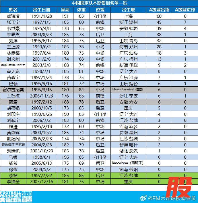 网友统计数据显示,邵佳一目前执教的这支国足,代表国足登场超10次的球员仅8人。